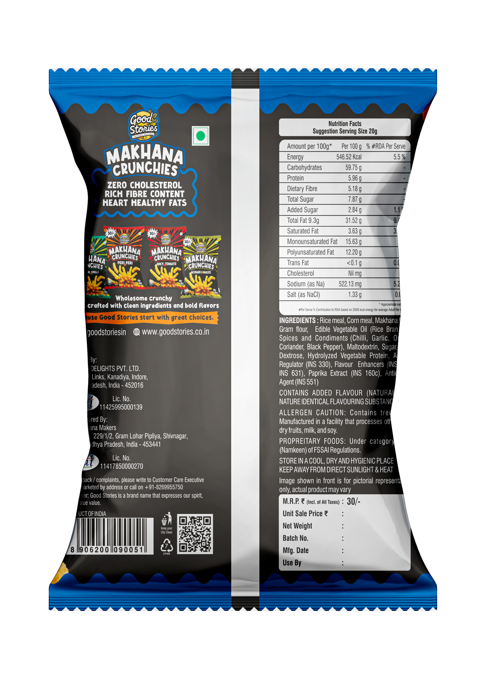 Smoky, spicy, and oh-so-satisfying! Our Barbeque Makhana Crunchies are crafted for those who love bold flavours with a slow-roasted twist. Infused with the rich essence of charred spices and a hint of heat, every bite is a celebration of that classic barbeque charm—without the grease or guilt. It’s the perfect blend of crunch and fire, wrapped in a smoky embrace. Crave the grill? Taste the thrill—anytime, anywhere.